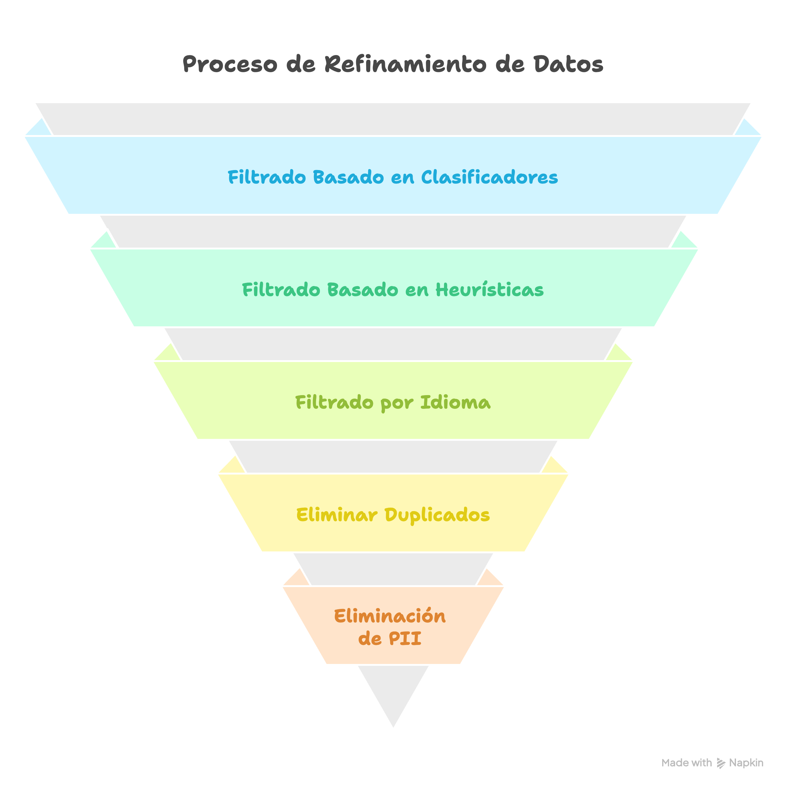 • Filtrado Basado en Clasificadores (Classifier-Based Filtering): Un classifier (clasificador) binario identifica textos de alta calidad (por ejemplo, páginas de Wikipedia) mientras filtra datos de baja calidad. Sin embargo, este método corre el riesgo de excluir contenido valioso en lenguajes dialectales o coloquiales