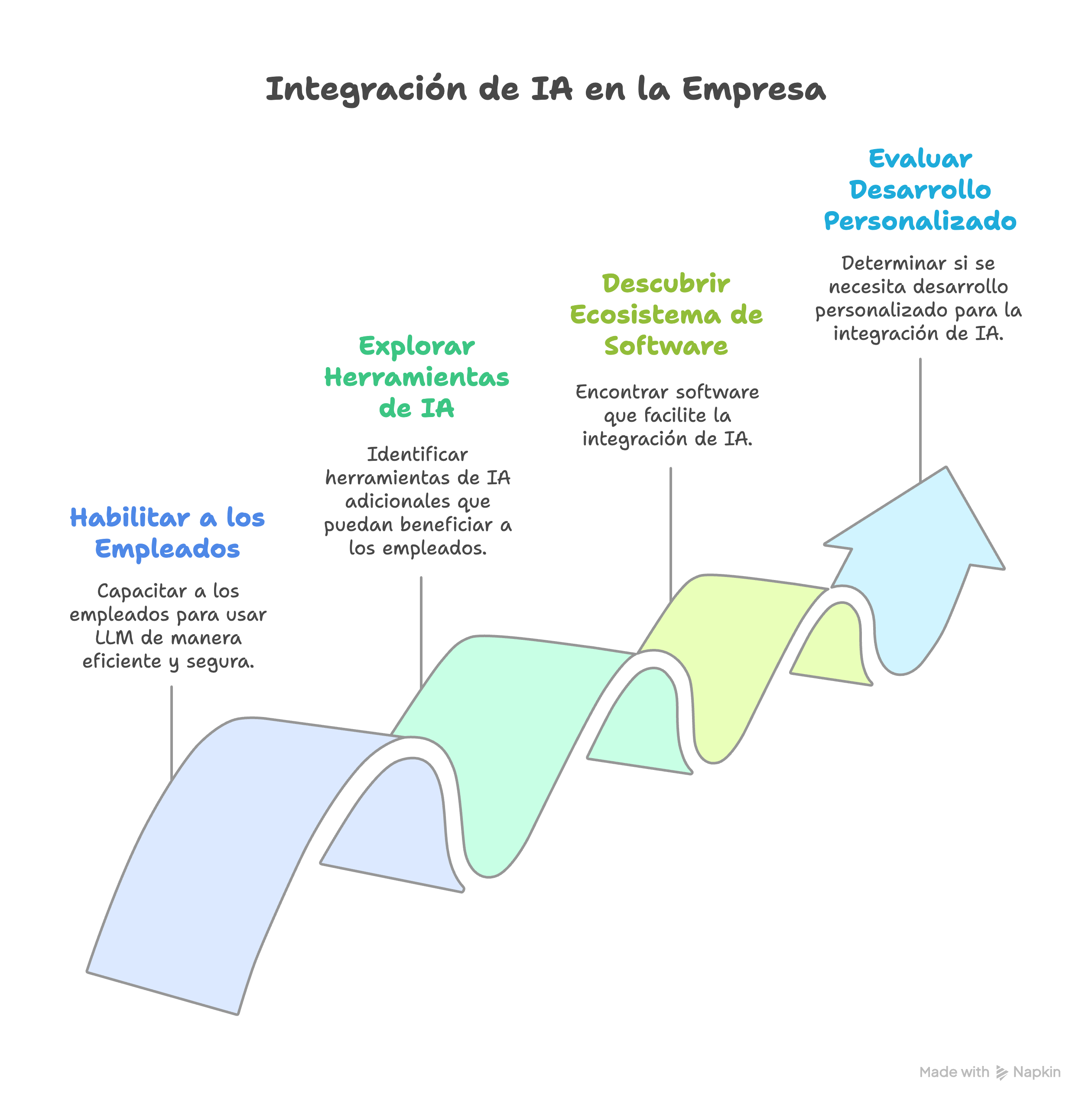 Adoptar IA no se trata solo de herramientas individuales, sino de cómo se integran en tus sistemas existentes. Aquí es clave considerar: